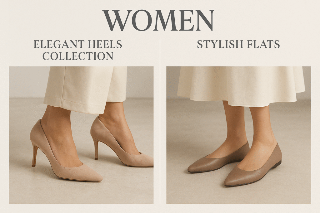 The Elegant Heels Collection combines luxury craftsmanship with modern comfort, featuring sophisticated styles from sleek stilettos to stable platform heels. These premium shoes offer walkable heel heights with cushioned soles and innovative design, ensuring all-day elegance without compromising comfort.